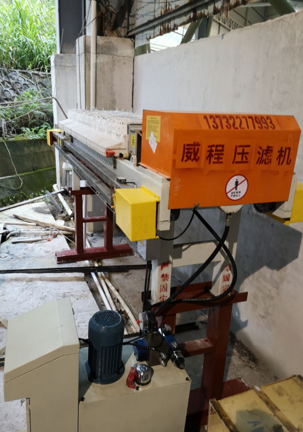分體式隔膜壓濾機,雙油缸,二次壓榨,電動液壓,自動保壓,自動拉板卸料。 -